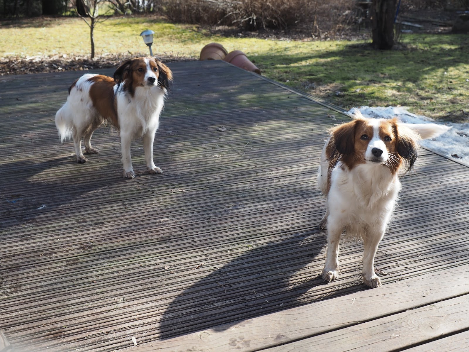 Ihanaa, että on kevät! Ihmisetkin viihtyy enemmän pihalla ja suostuu heittelemään frisbeetä ja muita leluja. Yksi takapakki tässä tosin valitettavasti on ilmennyt. Me ollaan Jackin kanssa jouduttu tuon tuosta suihkun alle- jopa monta kertaa päivässä. En yhtään ymmärrä tollasta touhua. Mitä siitä, jos ollaan vähän ryvetty ravassa? Ei se meitä häiritse yhtään. Karva kuivuu ja kura rapisee lattialle tai sänkyyn. A vot - ja turkki on taas tikissä. Onko se nyt sitten muka joku ongelma? Eikö ne ymmärrä, että meillä on itsepuhdistuva kooikkerinkarva? Mokomat herkkähipiäiset hygieenikot!
